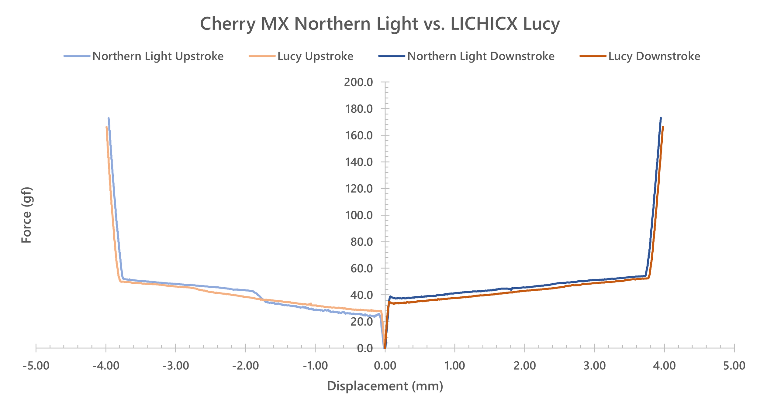 - Despite the extremely similarity of the force curves between these two switches as can be seen in the comparative force curve section below, the LICHICX Lucy switches definitely feel as if they have an overall shorter stem travel distance and bottom out much closer to 3.50 mm than 4.00 mm.