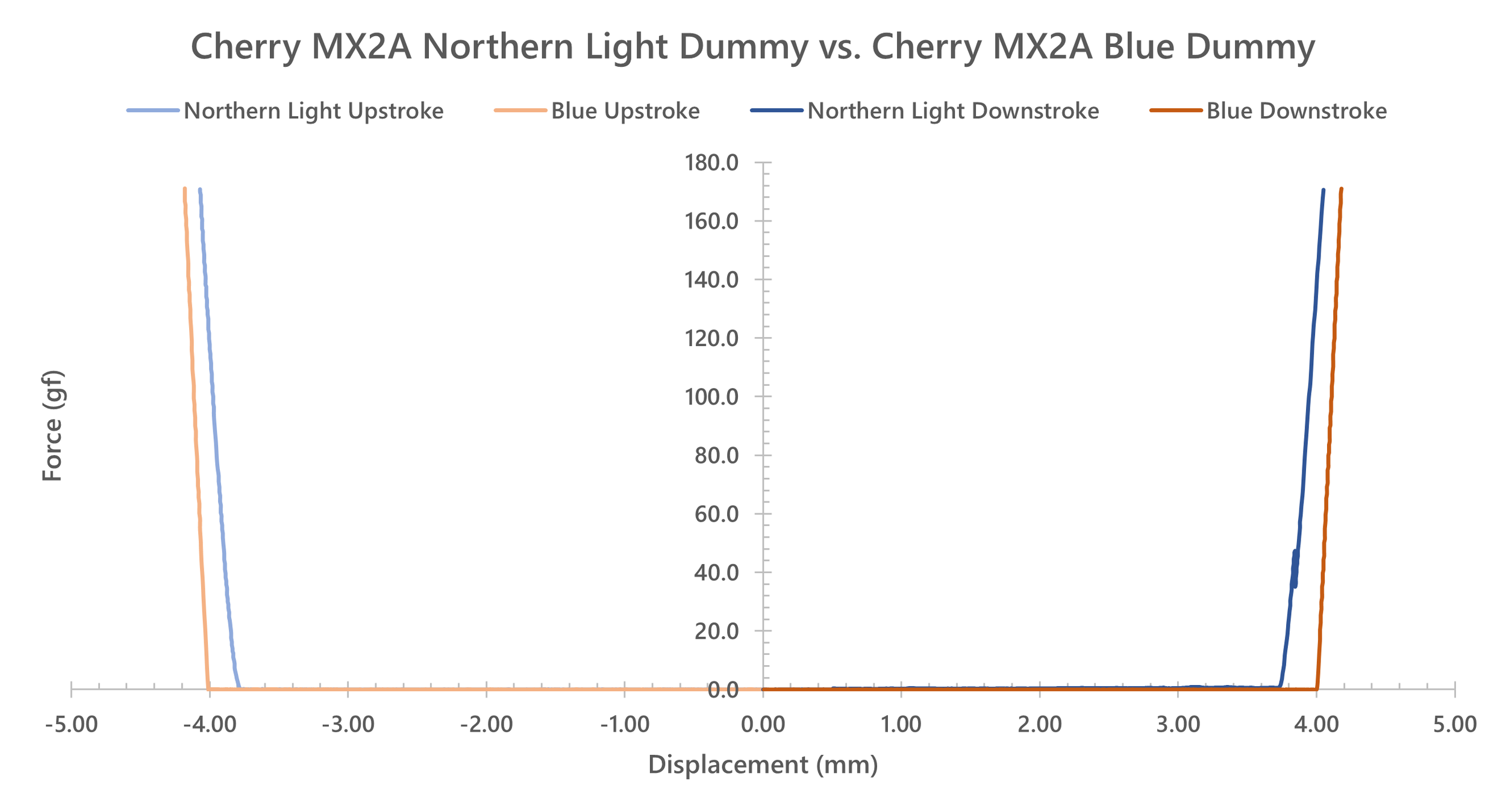 - The Cherry MX2A Northern Light Dummy switches have a significantly smoother stroke to them than the MX2A Blue Dummy switches and likely much more precise factory lubing application.