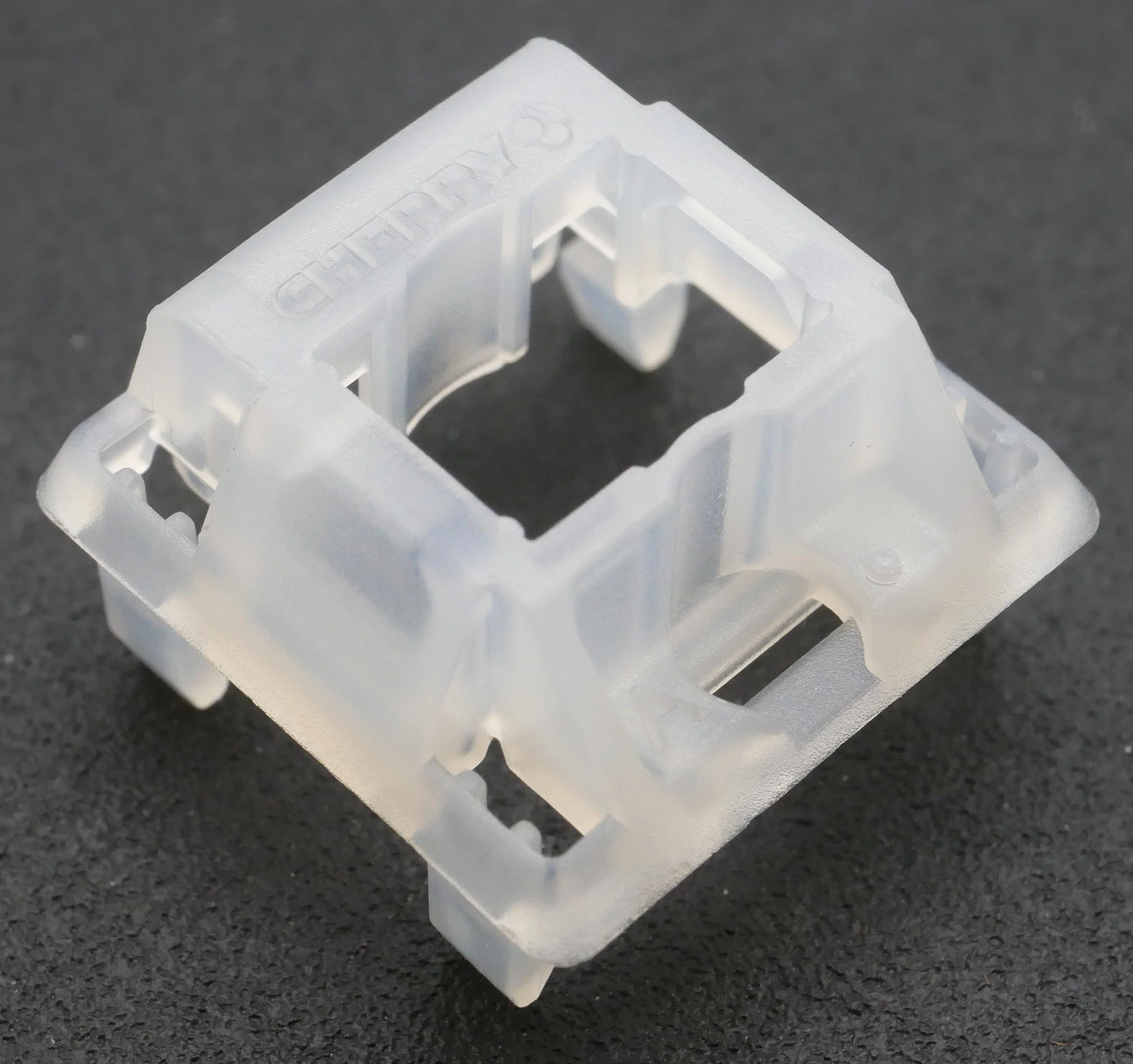 Figure 8: Cherry MX2A Northern Light Dummy top housing exterior showing modern, bubble letter 'CHERRY' nameplate and severely restricted through-switch LED/diode slot.