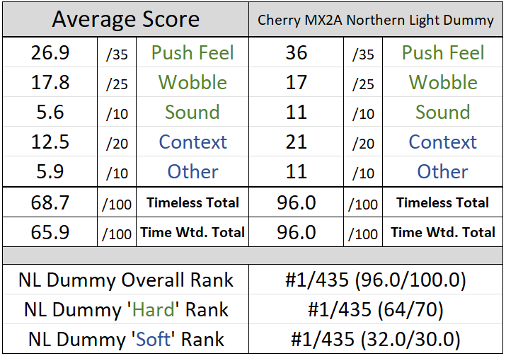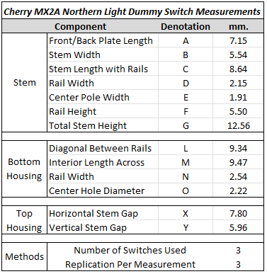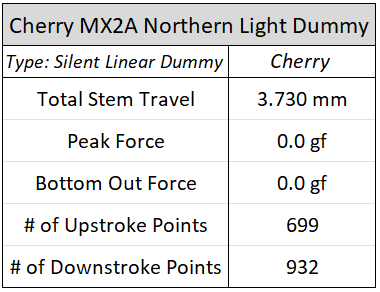 Figure 18: Numerical details regarding the stock Cherry MX2A Northern Light Dummy switches.