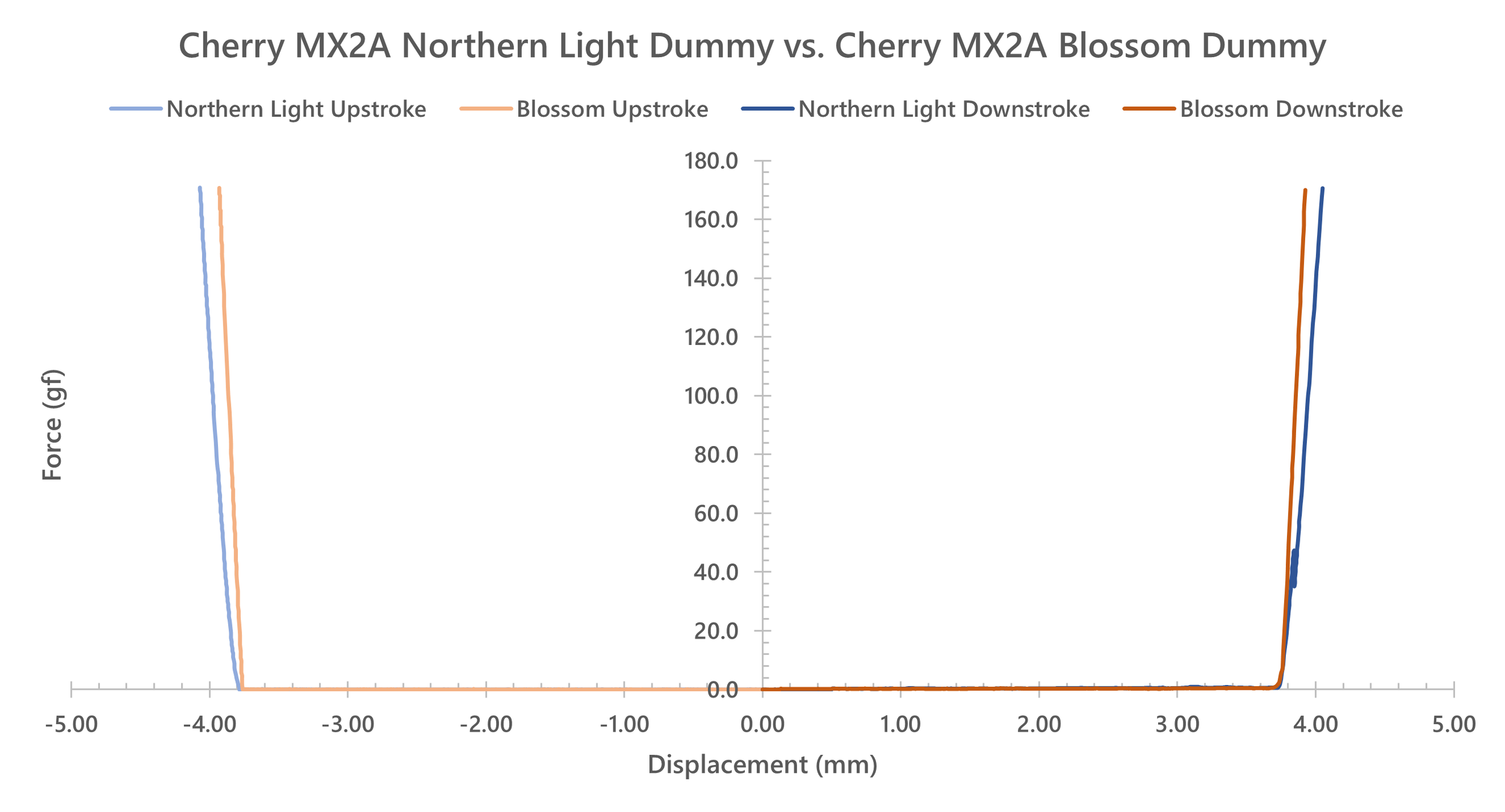 - On account of having the dampening pads at the base of the slider rails which help mute out both the bottom out feeling and sound, the MX2A Northern Light Dummy switches are much better dummy switches for maximizing the “localized force differentiation” effect. The MX2A Blossoms, by comparison, just sound a bit too much like other Cherry MX2A linears at bottom out.