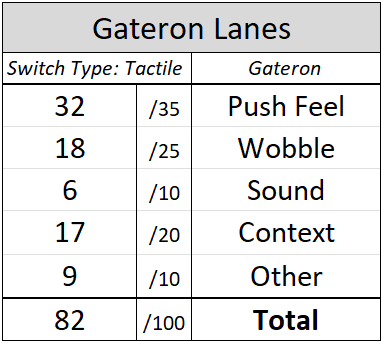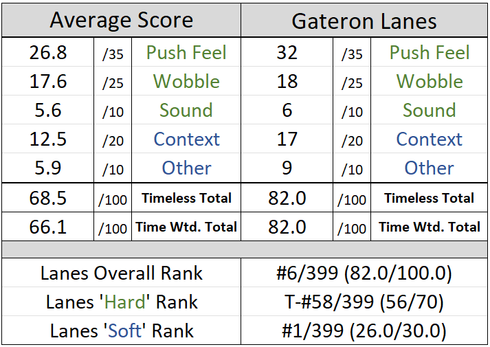 Note – These scores are not necessarily completely indicative of the nuanced review above. If you’ve skipped straight to this section, I can only recommend that you at least glance at the other sections above in order to get a stronger idea of my opinion about these switches.