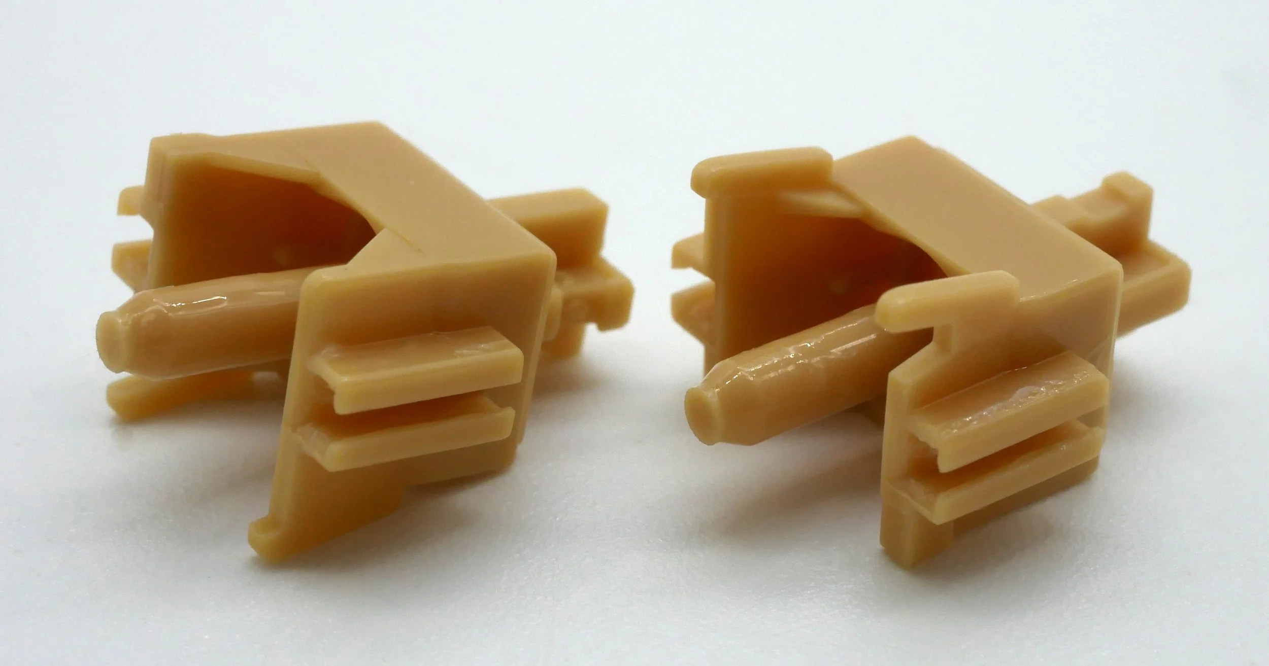 Figure 14: Size comparison of the 'wedge tab' feature of the top housings on the Gateron Lanes (Left) and Gateron Melodics (Right) showing that they do interact differently with the leaves in the bottom housings.