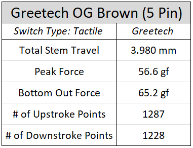 Figure 17: Numerical details regarding the force curve for the stock Greetech OG Brown switches.