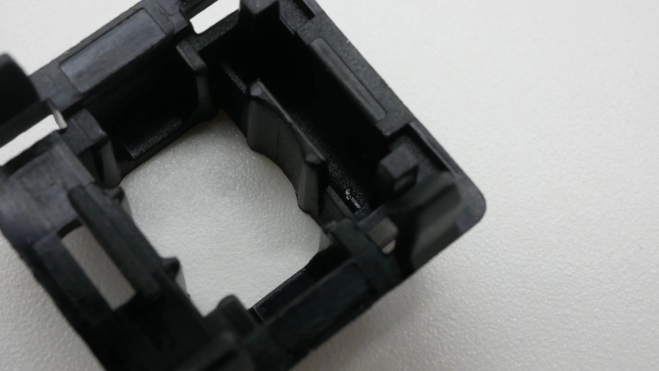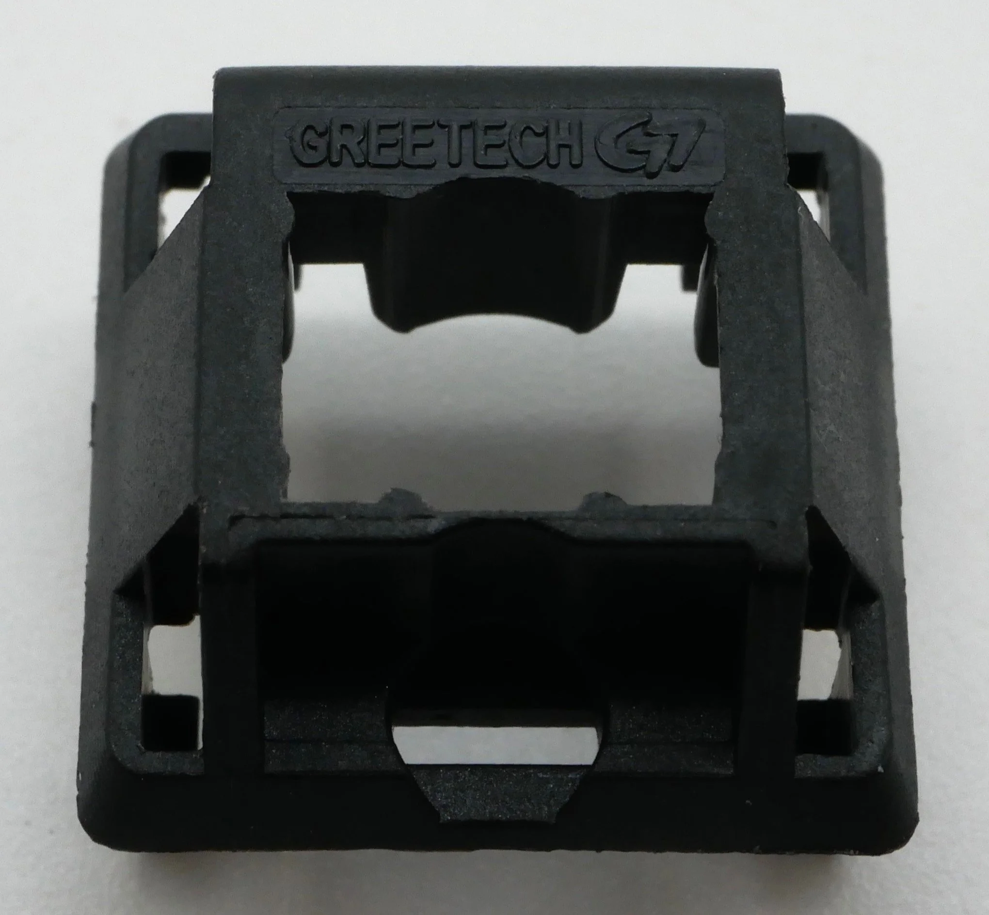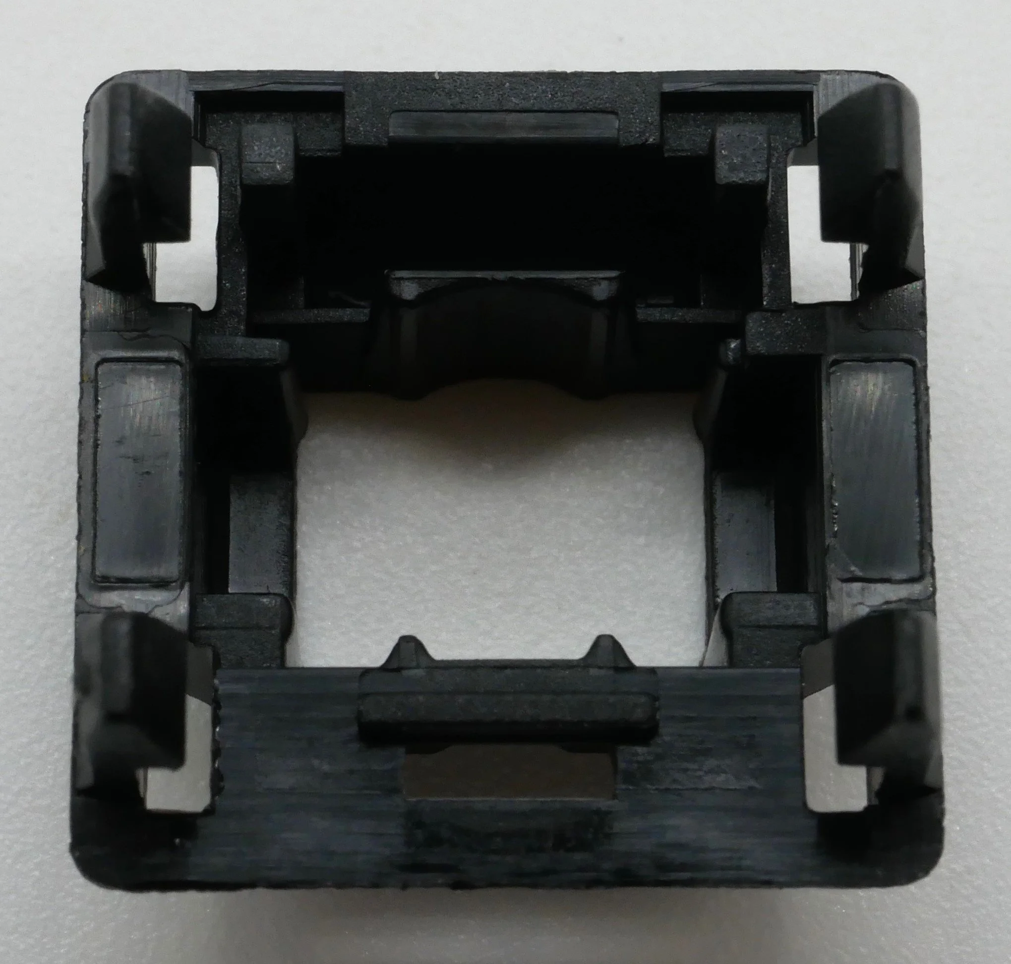 Looking first to the full matte black, assumedly nylon top housings of the Greetech OG Brown switches, one of the first details that jumps out to the eye is that of their crisp ‘Greetech GT’ nameplates. Without any contextual comparison to other historical Greetech switches, this nameplate looks rather sharp in its details and would almost certainly lead someone to believe these had to be the new ‘OG Browns’ as a result of how clean these details are. However, upon comparison to other OEM-style Greetech switches, the nameplates of the OG Browns hardly are any more or less sharp than their ancestors. Instead of a difference in sharpness, the most notable difference between these and older Greetech switches which helps properly identify them is that the OG Brown’s nameplate is sunken into the rectangular nameplate slot and only minorly textured instead of fully raised like older switches. Externally, though, the OG Browns otherwise look just like older Greetech switches with a rather restricted through-switch LED slot and four-pin housing attachment style. Internally the top housings are almost entirely barren of any interesting details or performance features that might make them perform any differently than original mechanical keyboard switches. The only detail of note herein is the presence of the mold markings for the OG Brown switches in the upper right- and left-hand corners on the underside of the curvature of the nameplate for the switch. While a large number of manufacturers will include their top housing mold markings in the lips and edges near the backside of the nameplate, this is the first one I’ve ever seen to actually put the mold marking on the backside of the nameplate itself.