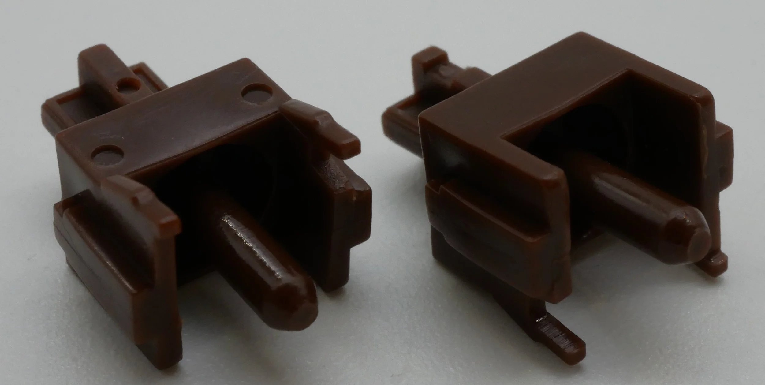 Arriving next to the brown POM stems of the Greetech OG Brown switches, there’s not a single feature of these stems that doesn’t absolutely perfectly match the classic mechanical keyboard switch stem design. Everything is here from the non-tapered slider rails to the normal length, slightly rounded center pole, and even the small mold ejector circles on the front plates of the perfectly squared off front and back plates. I even feel like there’s the faintest traces of factory lube on the sides of the stems that make them feel as if they rolled freshly out of a time machine from ~2016 onto my desk right in front of me for this review. Sure, these probably measure up a bit more consistently than those switches that would have been produced all of those years ago, and they likely have better than average factory lubing for that era, but these just look exactly like what comes to my mind when I think of as tactile brown switch stems. (Editor’s Note: Just wait for a few more paragraphs after this one.) I’m not sure they could have done anything else to them without having ruined this classic vibe.
