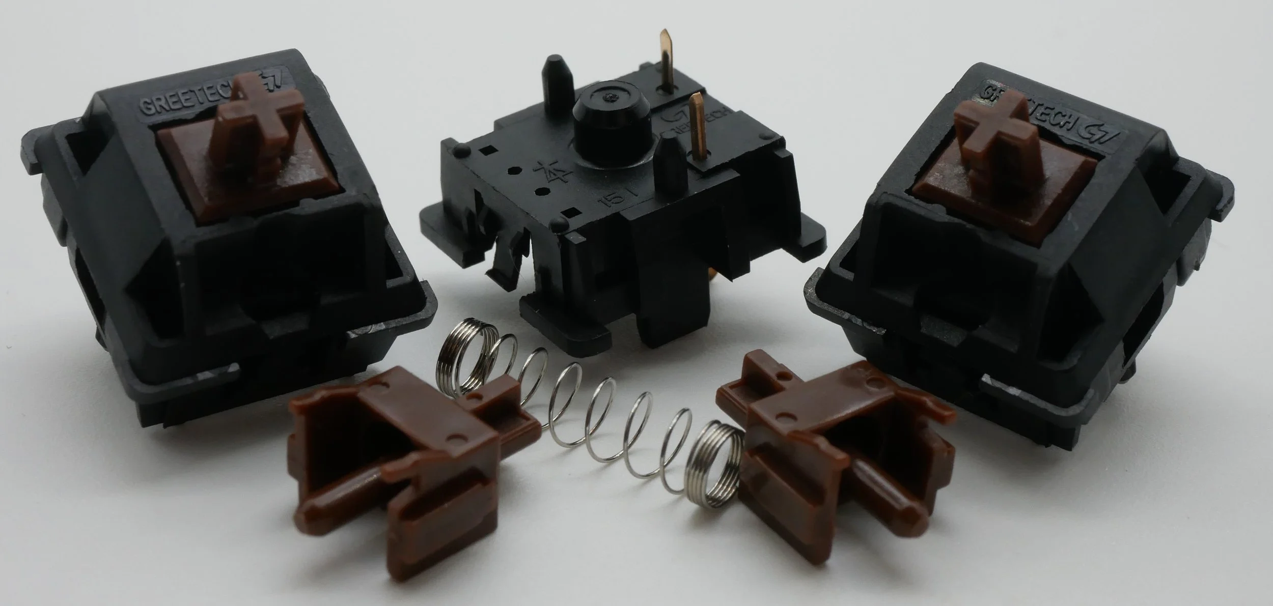 Despite having only shared a small number of plans for my Thanksgiving week off at the top of the last full length switch review, I’m sad to say that I didn’t get nearly as much done in that time off as I had hoped for. Like not even close to what I had intended to do. It’s not because I didn’t end up getting the brakes swapped out on my car nor skipping Ohio State very squarely putting Michigan in their place for the first time in several years, but all because I just had too many switches to go through. That’s right, there’s such a thing as too many switches even for me! After having added nearly 200 switches to the collection formally, and measuring force curves for a solid 80 or so of them along the way, I looked up from my work and found myself at the tail end of Sunday afternoon with piles more of switches to go through and no lunch week meals made quite yet. And while it certainly didn’t feel great to go back to work this past week with a pile of “still need to add these” switches on my desk at home, the time and effort that was spent was certainly worthwhile for the stuff that I did manage to get. I honestly can’t wait to share them all with you with switches like Co-Gain’s Magnetic Paragraph Axis that have tactility despite no apparent mechanism for such, Chinese Nintendo FC-inspired switches with first of their kind Chinese nameplates, Keylist Muffins, Zorro Purples with blood-red colored LEDs, Outemu Pi series switches with gold embossed top housings, and so many making for awesome displays. Even the Greetech OG Browns which have brought us all here today were parts of those dozens of packages I had to sort through. Despite wanting to share every detail I possibly can about all of those switches above with you, it’s very likely that I’m not going to have time to fully write out review or even short articles for each and every one of those incredible switches. As I’ve proven very well in recent weeks, sometimes I don’t even have time to look at all of my switches, much less give them that degree of thorough treatment. But there are still other ways that I share switches – I post aesthetically neat switches to Instagram and X a couple of times a week, I upload force curves for almost everything I bring in every few weeks on Github, and I even maintain a couple of free photograph and measurement repositories under the ‘Archive’ tab at the top end of this website. It’s been a minute since I’ve shouted out these other resources, so if you’re wanting to see me get to share even more switches than what I cover here every other week, consider combing through those thousands of photos, force curves, and measurements too sometime this next week. Not only does it make me glad to know that these resources are getting used, but you may even find your next new favorite switch in there as well…