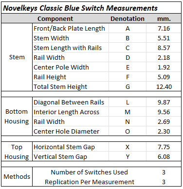 If you’re into this level of detail about your switches, you should know that I have a switch measurement sheet that logs all of this data, as well as many other cool features which can be found under the ‘Archive’ tab at the top of this page or by clicking on the card above. Known as the ‘Measurement Sheet’, this sheet typically gets updated weekly and aims to take physical measurements of various switch components to compare mold designs on a brand-by-brand basis as well as provide a rough frankenswitching estimation sheet for combining various stems and top housings.