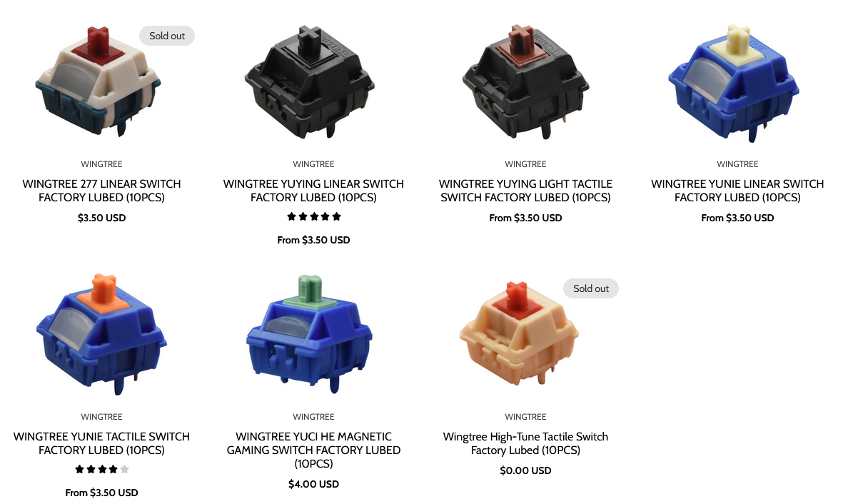 Figure 12: Wingtree switches presently available from Unikeys' storefront as of the time of writing.
