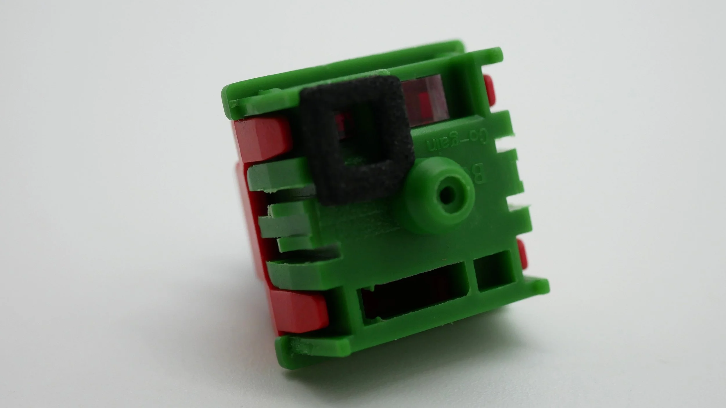 Figure 3: Underside of the Co-Gain/XUDA-made DareU Optical Color Red switch showing its odd structure and 'Co-Gain' housing branding.